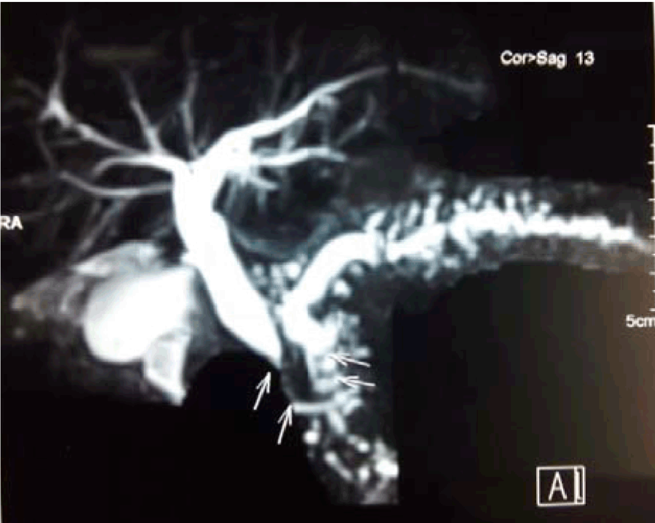Figure 4: MRCP showing biliary stricture (Wadsworth syndrome).