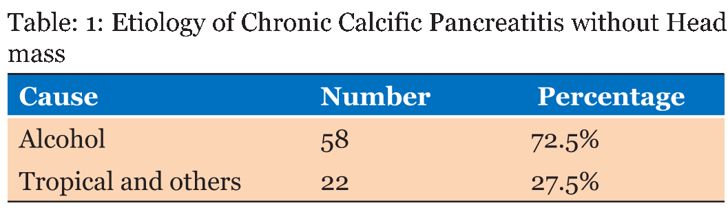 Table 1: Etiology of Chronic Calcific Pancreatitis without Head mass