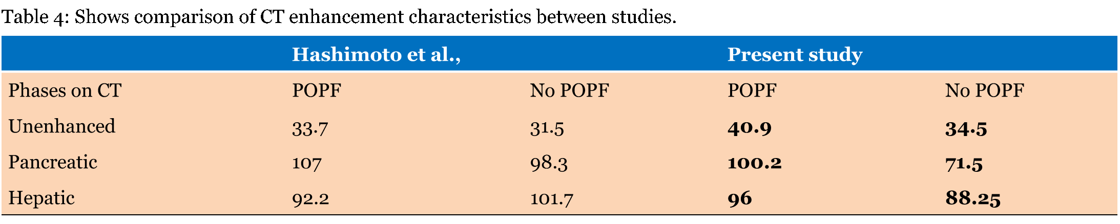 The late phase/Early phase (L/E) ratio may have a significant impact on our ability to predict a POPF. It is a simple and objective way of assessing the degree of pancreatic fibrosis by a non-invasive test preoperatively. The calculation is simple and does not require much time. The other advantage is that it comes at no additional cost to the patient. It can be calculated for all patients who undergo a pancreatic surgery and helps in better risk stratification. The ability to predict a leak may have a significant impact on patient outcome. It helps in preoperative patient counseling and warns the surgeons about the presence of high risk factors for leak. This may have an impact in teaching hospitals where patients may be segregated as per the risk and operations planned accordingly. The present study is significant in that, it tested the L/E ratio for chronic pancreatitis as well and found consistent results, which further validates the ability to co-relate radiology with histological fibrosis and incorporate them into clinical application. | ||||||
