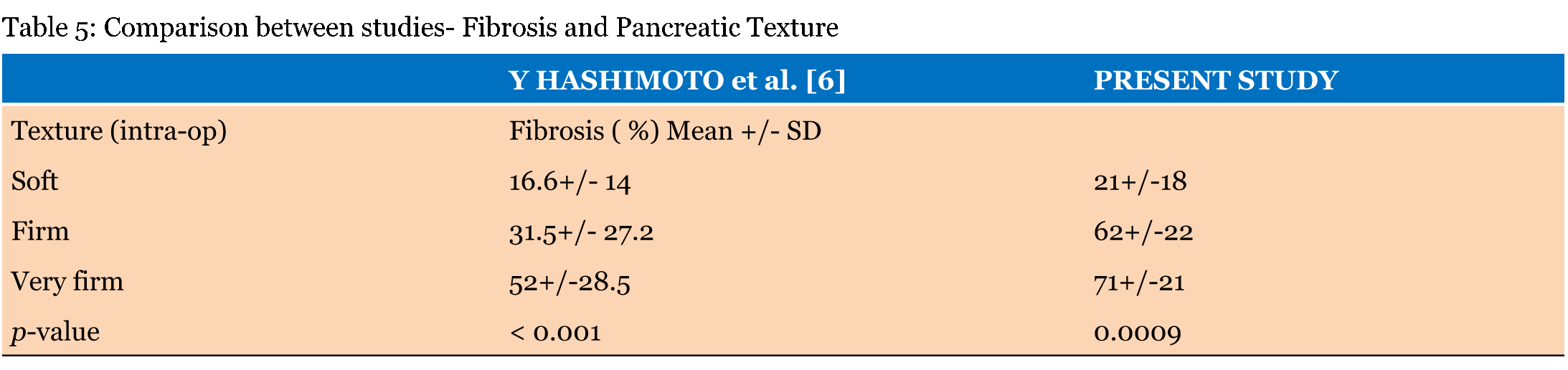 Any anastomosis concerning the pancreas and the bowel is considered most tenuous in gastrointestinal surgery. The pancreatic anastomosis after pancreaticoduodenectomy leaks in 5–30% [1] [2] and contributes to significant morbidity i.e., 30–50% [3] [4][5]. A leak cannot be avoided and is best anticipated both by the surgeon and the patient. The impact of a biochemical leak on an individual patient varies and has no relation to the biochemical parameters which define a leak. The International Study Group of Pancreatic fistula (ISGPF) definitions was used to classify pancreatic fistulas [6]. The accepted determinants of postoperative pancreatic fistula (POPF) are anatomic features of pancreatic remnant such as small pancreatic duct and soft pancreatic texture. Pancreatic fibrosis decreases the risk of anastomotic failure as seen in patients undergoing surgery for chronic pancreatitis [7] [8]. Recent studies have attempted using radiological methods to determine the pancreatic fibrosis and thus indirectly predict the risk of POPF [9] [10]. Primary aim of our study was to determine role of preoperative CT scan in determining the degree of pancreatic fibrosis and predicting the occurrence of a POPF following Pancreatico-enteric anastomosis. Secondary aim was to co-relate CT scan findings with intraoperative findings and histopathological degree of pancreatic fibrosis. | ||||||