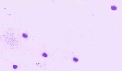 An 11-year-old boy was admitted to our hospital in May 2016 because of the edema of face and extremities, and anorexia in the previous four years. He is 152 cm and 52 kg. He also complained a mild abdominal pain for a day. He had soft stool daily. The abdominal ultrasound showed a multiloculated anechoic cystic mass adjacent to the head and neck of the pancreas. A contrast-enhanced computed tomography (CT) scan revealed a 7.7×4.5 cm cystic lesion involving head and neck of the pancreas (Figure 1), and also showed diffuse thickening of gallbladder wall. No evidence of pancreatic or biliary duct dilation was seen. Laboratory results included total serum protein 35.8 g/L (normal range 60–80 g/L), serum albumin 17.2 g/L (normal range 38–54 g/L), and serum globulin 18.6g/L (normal range 20–35 g/L), indicating hypoproteinemia, hypoalbuminemia, and hypoglobulinemia. Serum Immunoglobulin G (IgG), IgA and IgM levels were low as IgG 0.93 g/L, IgA 0.20g/L, IgM 0.48 g/L, of which suggested lymphocytopenia. Consistently, the blood cell count revealed low peripheral leukocyte count of 2.6x109/L (normal range 3.5–9.5x109/L) and low lymphocyte count of 0.3x109/L (normal range 1.1–3.2x109/L). Amylase and lipase were slightly lower, 11 U/L (normal range 20–35 U/L) and 12.6 U/L (normal range 13–60 U/L), respectively. Serum levels of triglycerides and cholesterol were normal, but electrolyte values showed low potassium 3.02 nmol/L. Fecal fat test showed negative results, indicating no steatorrhea. Urinalyses were within normal limits. The patient was suspected of having malabsorption and a protein-losing enteropathy (PLE). Nevertheless first to elucidate whether the mass in pancreas was malignant or benign, the patient was subsequently referred to our center for an EUS evaluation. EUS was performed under deep sedation according to the principles of "monitored anesthesia care". The patient received oxygen, and blood pressure and heart rate were monitored during the procedure. The procedure was performed by a single experienced endosonographer with more than five years of EUS experience, who had performed more than 300 EUS procedures and more than 150 EUS–FNA annually. Curved linear-array EUS (GF-UCT 260; Olympus, Japan) was performed showing an anechoic cyst located at the head and neck of pancreas, approximately 2.3 cm in cross section. No perilesional lymphadenopathy was noted. The imaged portions of the liver, pancreas, and biliary tree were otherwise normal. A 22-gauge needle was advanced through the mucosa of duodenal wall and into the targeted lesion in pancreatic head (Figure 2) (EchoTip Ultra; Cook Endoscopy, Ireland). Fine-needle aspiration (FNA) was performed under EUS guidance whereas after three passes of drainage, yet no remarkable reduce of the size of cyst was observed. Approximately, 18 mL of chylous white fluid (Figure 3) was collected and sent for cytology and laboratory analysis. Biochemical analyses revealed an amylase level of 74 U/L, carcinoembryonic antigen (CEA) of < 0.5 ng/mL, and a markedly elevated triglyceride level of >5,000 mg/dL. Cytology was negative for malignancy and revealed fibrinous fluid with a few relatively uniform small lymphocytes present. A diagnosis of pancreatic cystic lymphangioma was made and no further diagnostic testing such as immunostaining was conducted. Patient was suggested to have further evaluation, such as colonoscopy, but declined by his parents who subsequently agreed to follow-up. | ||||||